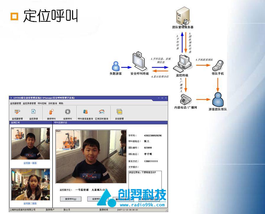 如果有体验者走失迷路,可以通过附近的自助查询设备随时查询和报告自己的位置,并呼叫控制中心,获得帮助,控制中心会通知其他团队成员到达现场;
